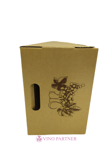 Karton stříška 3 lahve, HNĚDÝ s potiskem hroznu