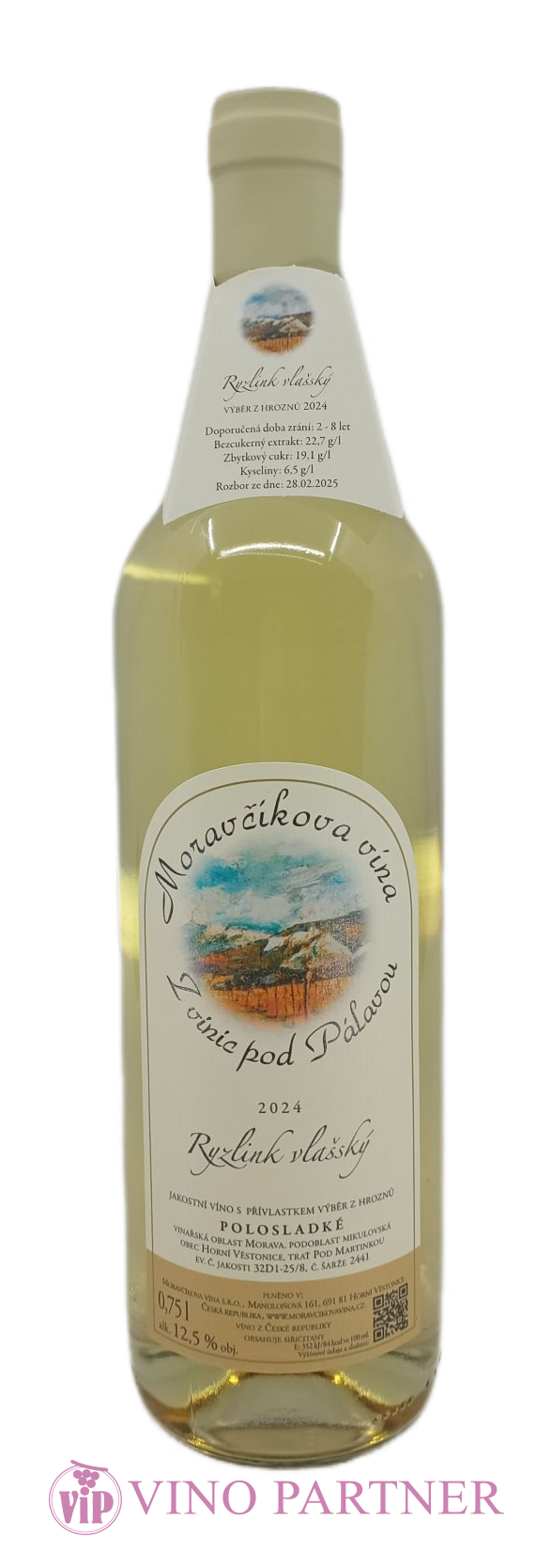 Ryzlink vlašský 2024 výběr z hroznů (polosladké) Vinařství Moravčík